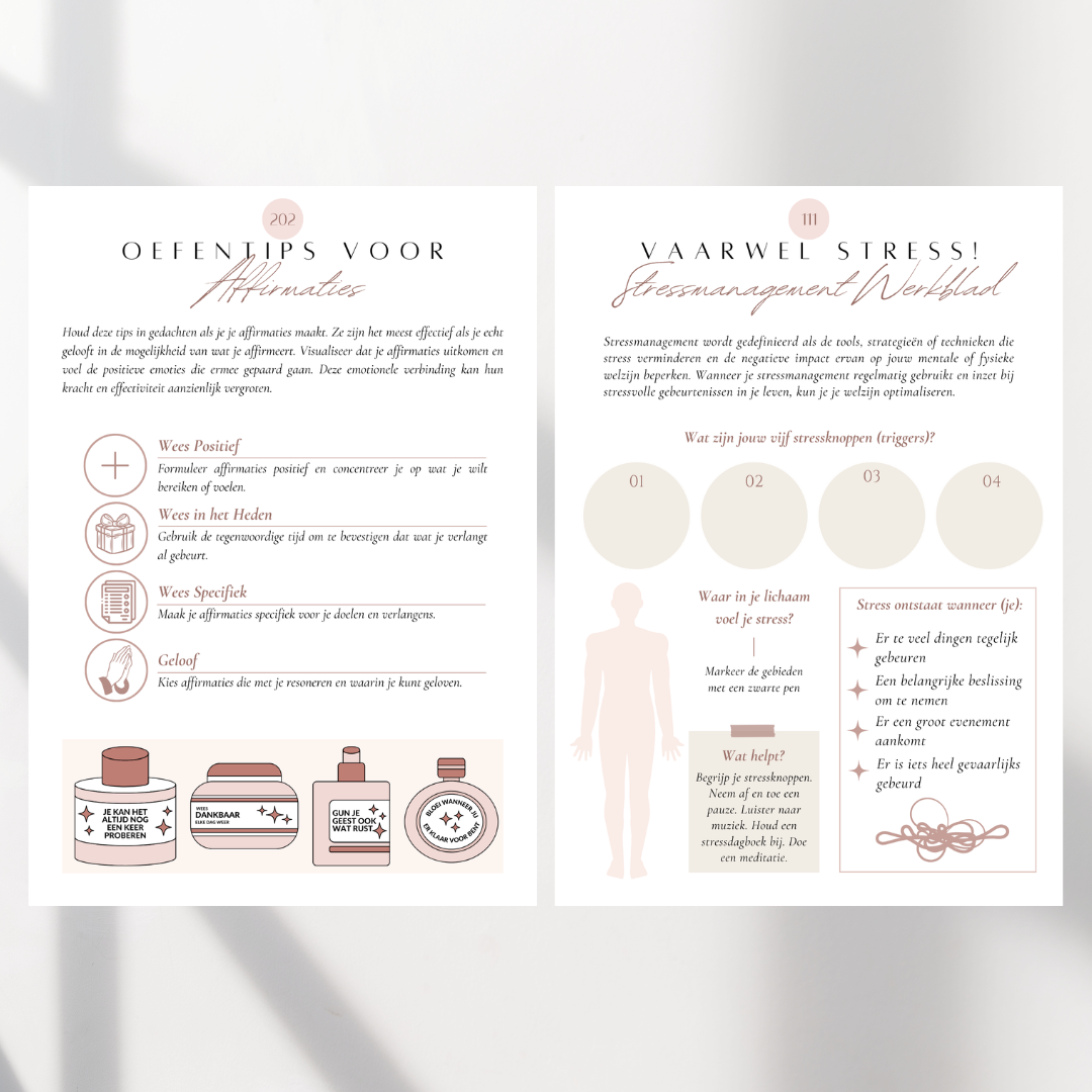 - 222 pagina’s vol waardevolle content die je helpen op jouw persoonlijke manifestatiereis.